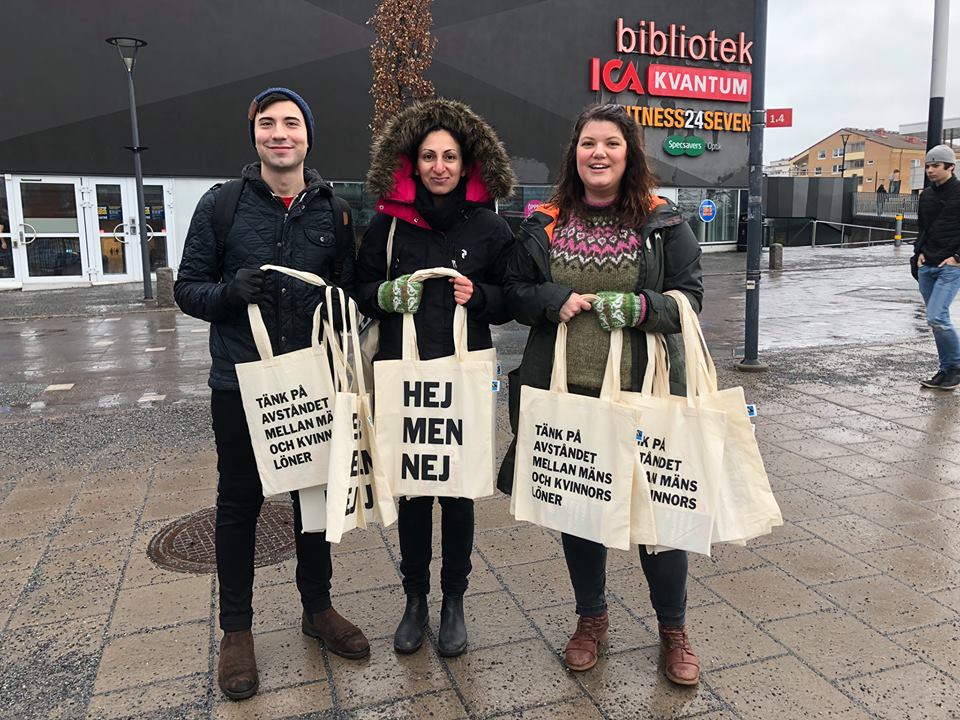 Här springer vi runt och delar ut 150 feministiska böcker på Internationella kvinnodagens morgon! En tradition för Vänsterpartiet Österåker.